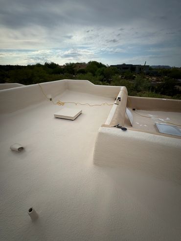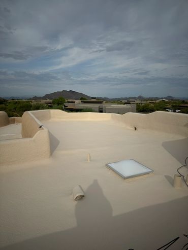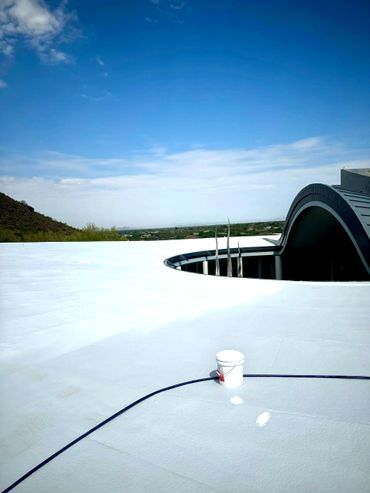 Elastomeric Roof Coating is excellent for use over polyurethane foam, metal, asphalt emulsions, masonry, asphalt shingles, cap sheet, plywood and concrete. It was developed primarily for use directly over these roofing materials due to its excellent adhesive qualities as well as its superior reflectivity making it extremely UV stable to protect your roof from the intense heat and the sun's damaging ultra-violet rays we encounter daily here in Arizona.